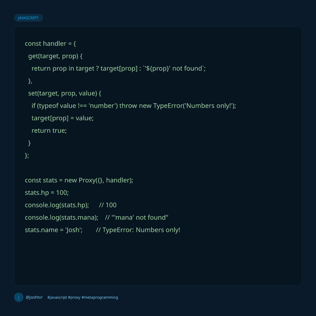 Proxy wraps any object and lets you intercept reads, writes, and deletes.